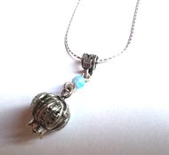 Necklace sterling silver pomegranate pendant with an opal blue stone 3 cm long - chain 45 cm