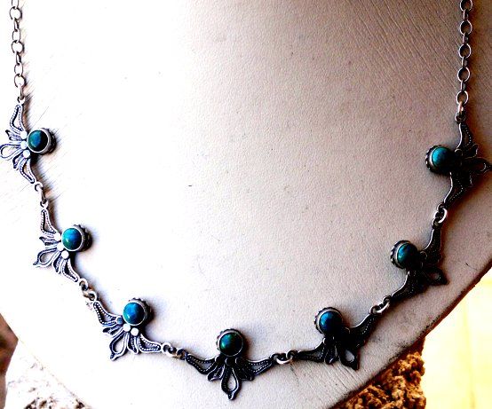 Filigree Eilat stones israeli silver necklace. Sterling silver jewelry with Eilat stones.