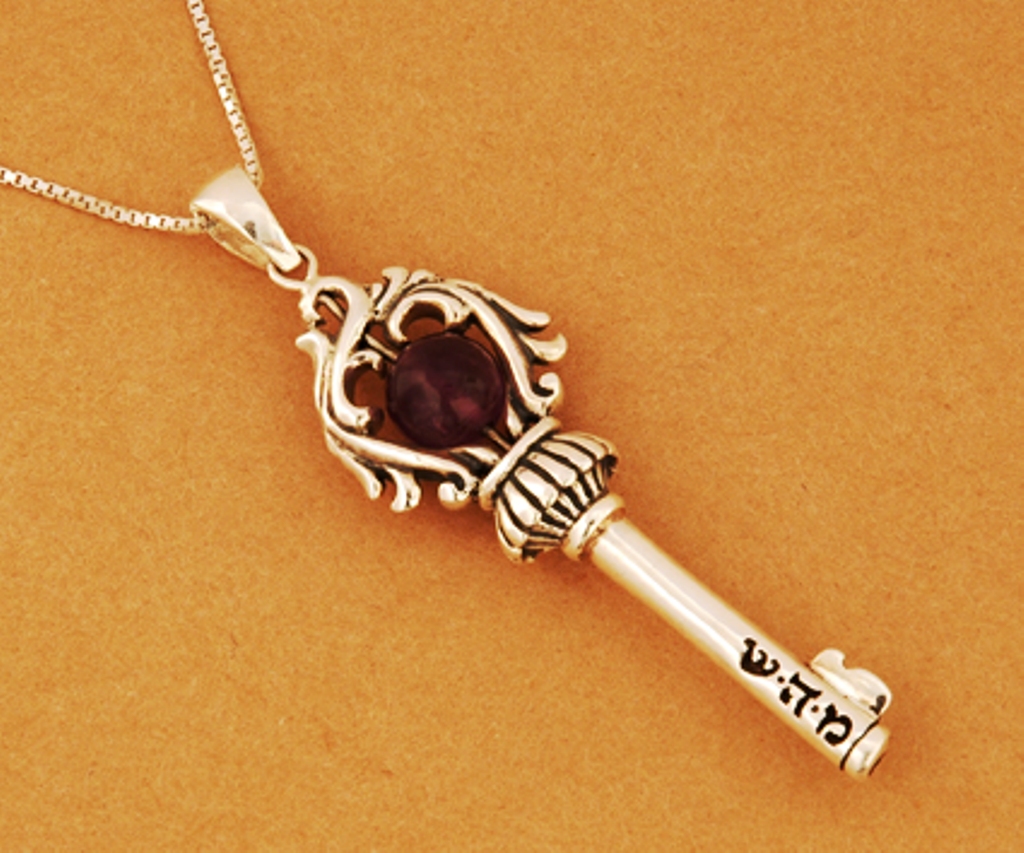 * Fabriqué en Israel * Véritable Améthyste(pierre violette) * Clé en Argent 925 (long: 5,5cm) * Livré avec une chainette en Argent 925 (long: 40 cm)